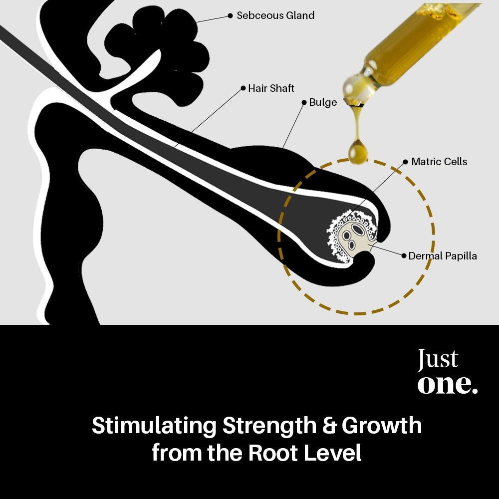 Unlike generic hair oils that sit on the surface, Just One’s potent blend penetrates deep, targeting the root cause of hair issues.